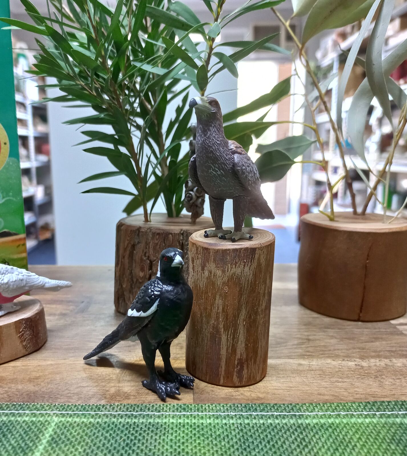 Bird replicas - 2 x Galah, 1 x Emu, 1 x Magpie, 1 x Wedge-tailed eagle