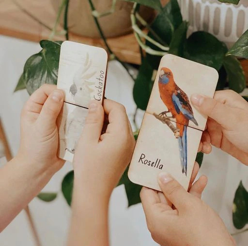 These simple two piece puzzles feature beautiful vibrant images of Australian birds, as well as their name.