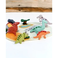 Dive into the world of dinosaurs with this enchanting Dinosaur Finger Puppets Set! Featuring five beloved prehistoric creatures that are sure to spark your child's imagination and curiosity. The set includes a Brachiosaurus, Triceratops, Tyrannosaurus Rex, Stegosaurus, and Pteranodon, each beautifully detailed and ready for rawrsome adventures.