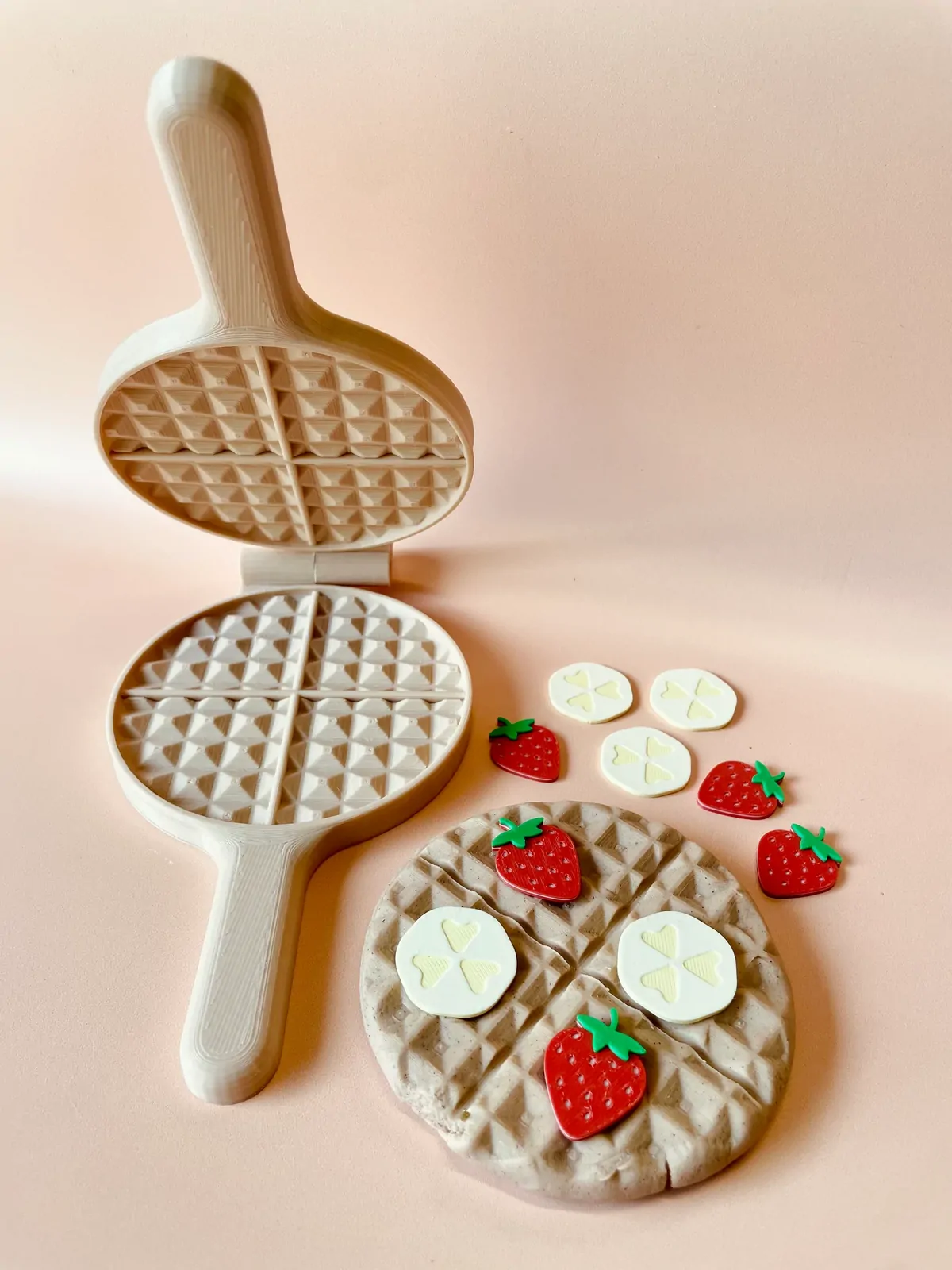 Beadie Bug Play 3d print their eco waffle press from PLA, which is a plant-based bioplastic derived from renewable resources, such as corn starch, tapioca root or sugarcane. The product also contains a stainless steel screw, which is secured with non-toxic glue. This waffle press will withstand wet sensory bases, like water beads, food and fizzy potion play, just remember to HAND WASH and immediately dry after use to prevent moisture absorption and warping. It is not recommend immersing in liquid for long periods but a little splash and fizz will be fine.  PLA is not hydrophobic and may absorb colours from paint, fizz and food.