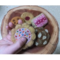 Each biscuit has been meticulously needle- felted with dense wool that has been dyed with non-toxic colours, making it safe for play.