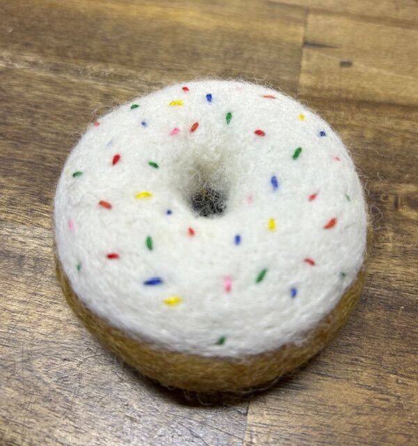 Each doughnut has been meticulously needle-felted with dense wool that has been dyed with non-toxic colours, making it safe for play.