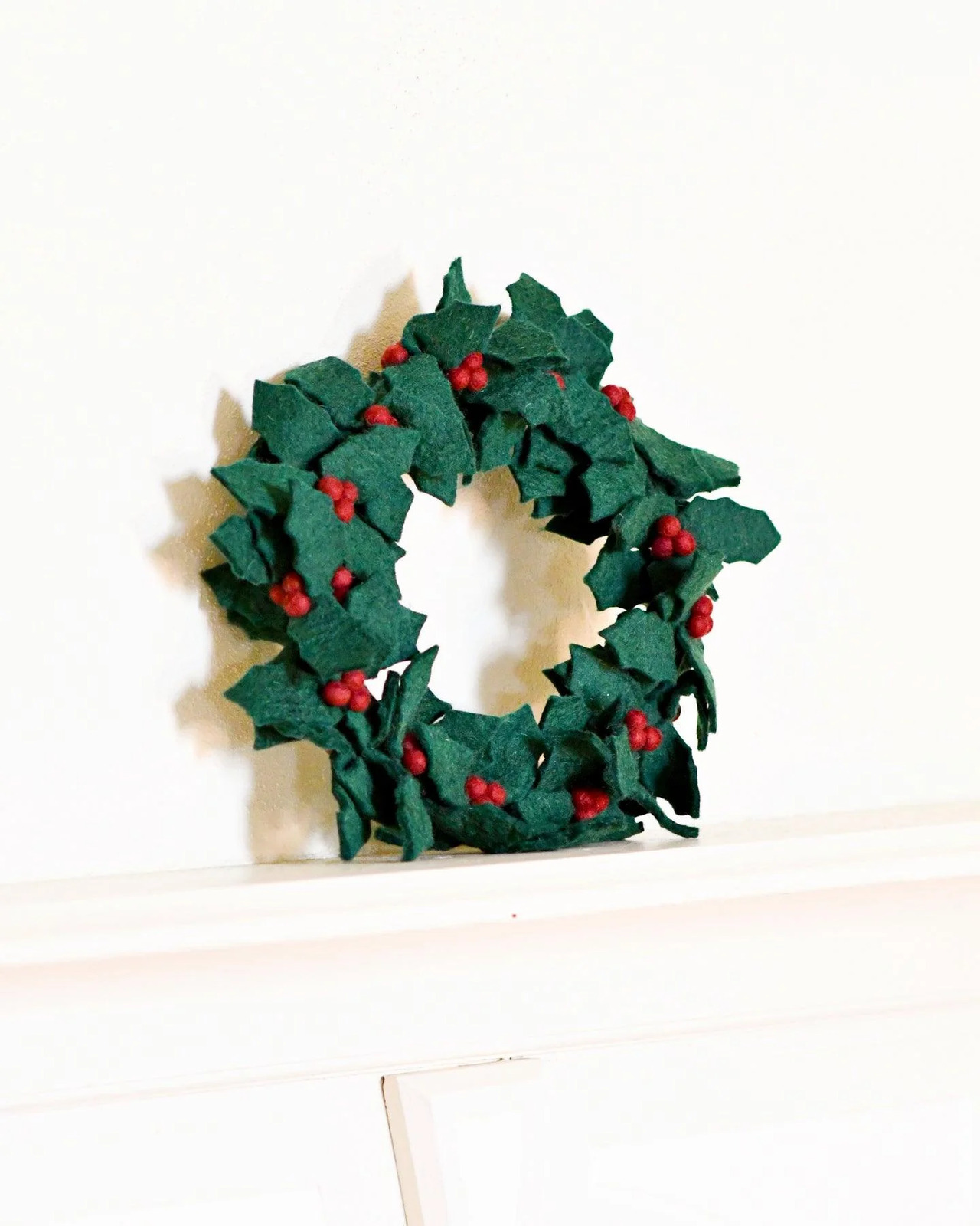 Hang our Felt Holly Wreath with Red Berries on your front door to welcome guests with a traditional symbol of the Christmas holiday season. Display it above your fireplace or in your living room to evoke a sense of warmth.