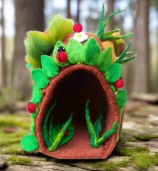 This charming Ladybug mini cave stands about 20cm high and is hand-felted with adorable ladybugs, a friendly snail, and sweet flowers.
