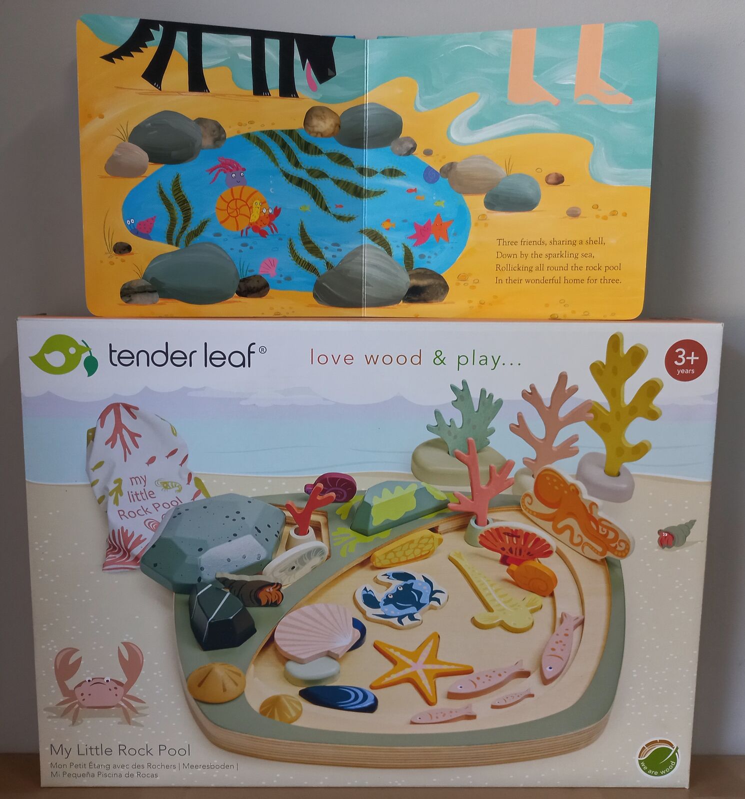 Imagine discovering the secret sea creatures hiding within the crevices of three large, sturdy rocks. This unique rock pool design features cavities where small fish and shrimp can play, along with three shape-sorting base layers to enhance your child's learning and development. And that's not all! The rocks with holes can even be transformed into a 3D seaweed forest, adding an extra layer of imaginative play.